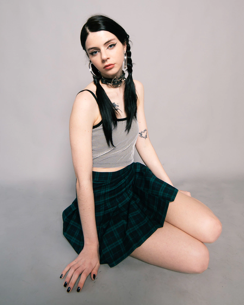 Top musculosa negro de breteles finos de calce anatómico a la cintura. Hecho de algodón con lycra y red blanca.